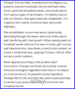 The Alligare Triclopyr 4 Herbicide is a concentrated liquid weed control solution designed for outdoor use. With a EPA registration number of 81927-11, this herbicide is effective for eliminating unwanted plants in your yard, garden, or outdoor spaces. The pack contains 2.5 gallons of the Alligare Triclopyr herbicide, providing you with ample supply for your weed control needs. Please note that this product is for outdoor use only and should not be applied indoors. Trust the Alligare brand to help you maintain a healthy and well-manicured outdoor environment.