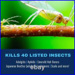 12 MONTH PROTECTION: With just one application, kills listed insects and prevents new infestations for up to a year. INSECT & PEST KILLER: Kills Japanese Beetles, Emerald Ash Borers, Adelgids, Leafminers, Aphids, and more. SLOW-RELEASE FERTILIZER: Plant food and fertilizer improves the health of your trees and shrubs. SYSTEMIC PROTECTION: Protects your potted and outdoor trees and shrubs from the roots to the stem of every leaf. RESTRICTIONS: Not for sale in CT, CO, MD, MA, ME & VT.