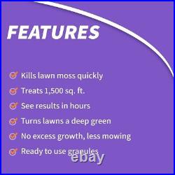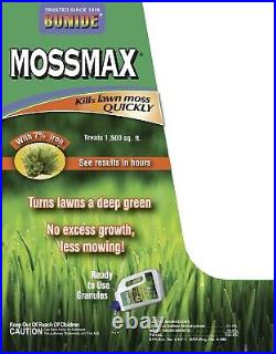 MossMax Lawn Granules not only kills lawn moss quickly, it also turns lawns a deep green. For normal infestations of moss, apply this product at the rate of 4 pounds per 1,000 square feet.