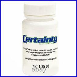 Certainty Herbicide - 1.25 oz bottle (1.25 oz). Certainty Turf Herbicide is a selective, post-emergent herbicide that controls labeled weeds in residential and commercial turf. Certainty Turf Herbicide is easy and flexible to use and has excellent control of both purple and yellow nutsedge. Combined with a non-ionic surfactant, Certainty Turf Herbicide attacks nutsedge through broadcast applications or spot treatments. With Certainty Turf Herbicide, you get the most complete package of turf safety, application flexibility and broad-spectrum weed control versus the competition. Only for use on the following warm season grass types: Bermudagrass (common or hybrid), Bahiagrass, Buffalograss, Centipedegrass, Kikuyugrass, St. Augustinegrass, Seashore paspalum, and Zoysiagrass. Note: Certainty Turf Herbicide is not labeled for golf course putting greens or within 4 feet of the putting green. Certainty Turf Herbicide controls tough weeds in residential and commercial turf. In "warm" season turf, Certainty Turf Herbicide will control broadleaves, sedges and kyllinga.