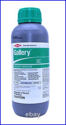 Gallery SC Specialty Herbicide quart (32 oz). Gallery specialty herbicide provides superior preemergence broadleaf weed control with best-in-class ornamental and turf safety. Not only does Gallery minimize hand-weeding in landscape ornamentals and established turfgrass, but also can be used on field-grown ornamentals and on roadsides. Gallery SC specialty herbicide provides superior preemergence broadleaf weed control with best-in-class ornamental and turf safety. Season-long control: Commercial outdoor space Gallery SC specialty herbicide provides season-long control of more than 90 species of broadleaf weeds. Minimizes Hand Weeding: Gallery SC works around the clock for up to four to eight months to keep landscapes and container- and field-grown nursery ornamentals weed-free. Prevents the hassle of callbacks, minimizing costly hand-weeding and reducing the need for re-treatment.