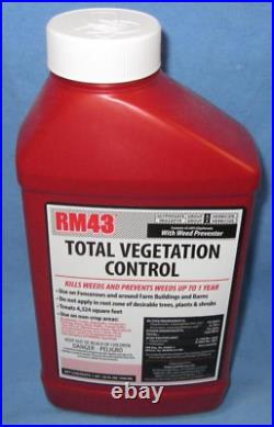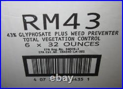 Six 32oz Bottles of RM43. A total of 1.5 Gallons. RM43 43% Glyphosate Plus Weed Preventer Total Vegetation Control. Ideal for fence rows, gravel paths, sidewalks, driveways, parking areas. And around farm buildings and barns.